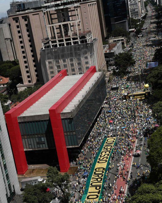 Miles de brasileños marcharon este domingo para protestar contra la corrupción política y en apoyo a los investigadores del emblemático caso Petrobras, en momentos en que el país vive un crudo enfrentamiento entre el Congreso y el poder judicial.