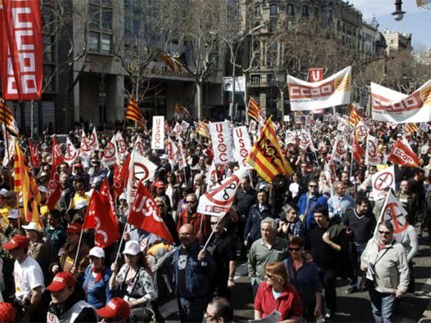 La otra gran protesta tuvo lugar en Barcelona, donde 450.000 personas, según los sindicato, -17.000 de acuerdo con la policía- participaron de la marcha detrás de una gran pancarta con el lema “Ni reforma laboral ni recortes”.