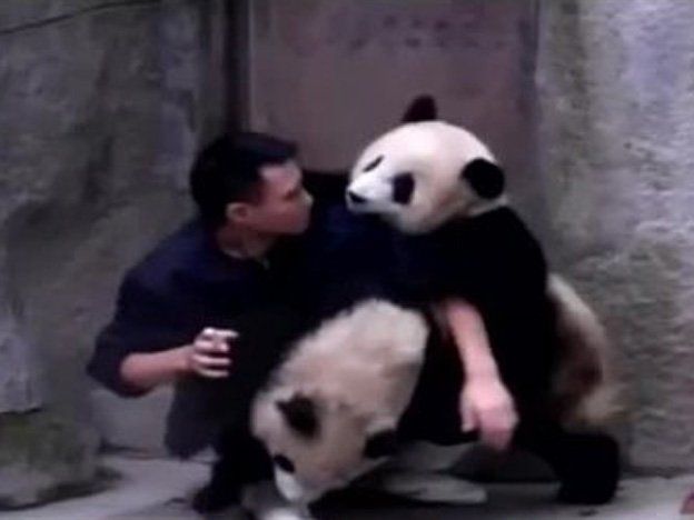 Este empleado de un zoo de China tuvo que lidiar con estos dos ositos cariñositos que se resistieron a puro abrazo y molestando a su cuidador.