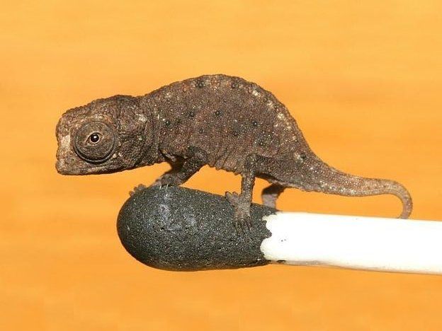 Científicos alemanes descubrieron en Madagascar unos camaleones enanos que parecen sacados de un mundo en miniatura. Estas criaturas, llamadas Brookesia micra, se encuentran entre los reptiles más diminutos del mundo. Alcanzan una longitud máxima de solo 29 milímetros. Aunque parezca increíble, son más pequeños que la uña de un dedo humano y se sostienen sobre la cabeza de un fósforo. La investigación aparece publicada en la revista científica PLoS ONE.