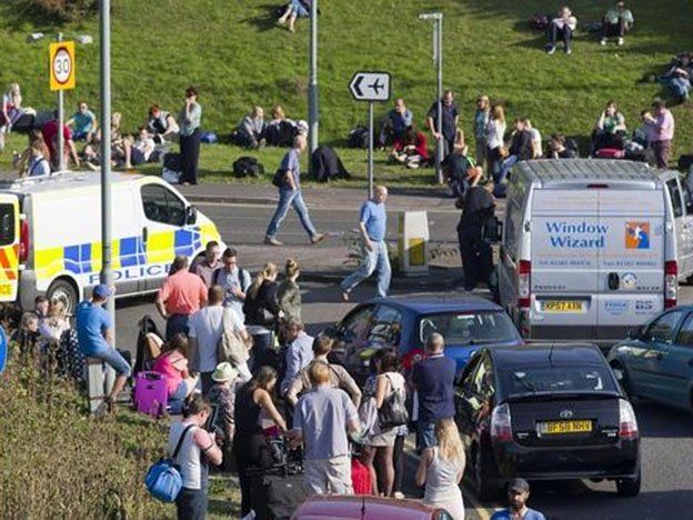 La autopista M-1 fue cortada en su tramo de acceso al aeropuerto, sito en Bedfordshire.