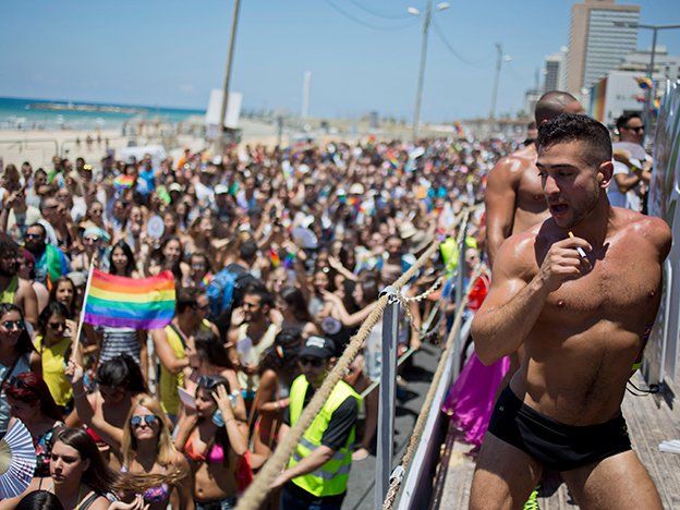 Miles de hombres musculosos con el torso desnudo, otros disfrazados de mujeres con tacones altos y mucho maquillaje, y mujeres con llamativos disfraces de globos participaron este viernes en el desfile anual del Orgullo Gay en Tel Aviv, el mayor encuentro de su tipo en el Medio Oriente.Poco más de 100.000 personas tomaron parte en la marcha, dijo la policía, mientras que según la prensa israelí, la cifra fue de 180.000. El desfile atrajo a demás a miles de personas de diversas partes del mundo.