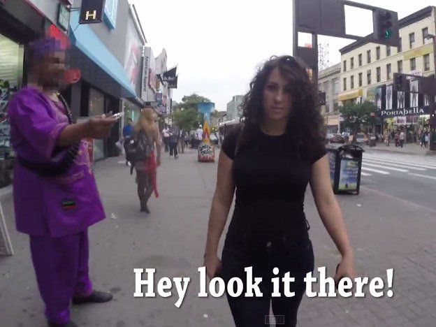 Ella camina por las calles de Nueva York tras una cámara oculta que registra el constante atosigamiento de los hombres. El video resultante se ha vuelto viral y provocó un debate sobre el acoso callejero que las mujeres y las minorías deben soportar.