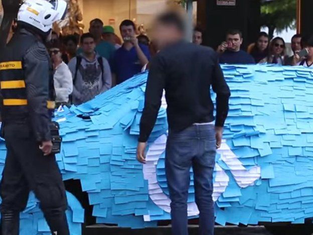 (CNN Español) – Un automovilista en la ciudad brasileña de Maringá que estacionó su vehículo en una zona para personas con discapacidad se encontró con una enorme sorpresa al regresar por su auto, según medios locales.Luego de atender sus asuntos, nunca pensó que al regresar por su auto se encontraría con que estaba cubierto de papeles azules y blancos que formaban el símbolo internacional de las personas con discapacidad, según varios videos publicados en YouTube, reportó Record News.
