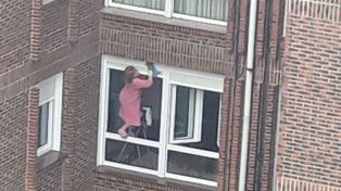 Las fotografías fueron compartidas en una página de Facebook y se han vuelto virales. Los usuarios destacan la altura a la que parece que se encuentra la ventana desde donde la mujer limpia los cristales sin ningún tipo de sujeción.