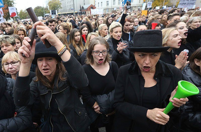Las huelgas y protestas del lunes siguen a una marcha el sábado que reunió a miles de personas ante el Parlamento en Varsovia. Las mujeres vistieron de negro en signo de luto por la temida pérdida de sus derechos reproductivos y por las muertes que temen enfrenten algunas mujeres si la propuesta se aprueba en su estado actual.