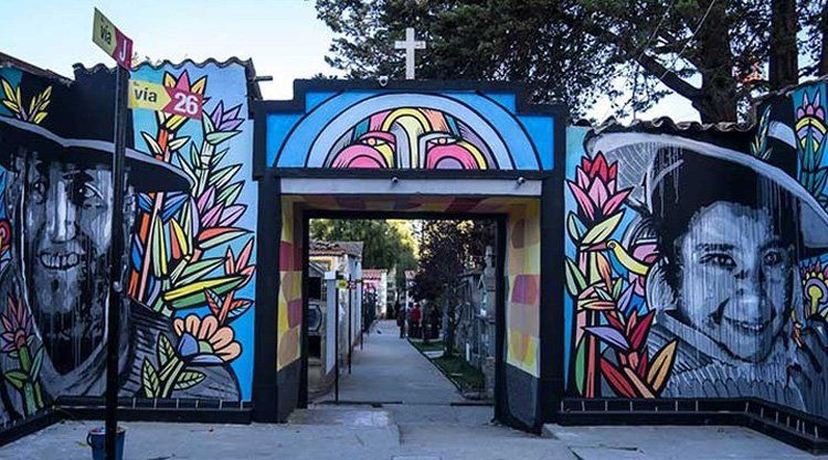 Artistas latinoamericanos elaboran una veintena de murales en el cementerio más antiguo de Bolivia, para dar color a un lugar donde reina la tristeza, en la antesala de la festividad religiosa de Todos los Santos.