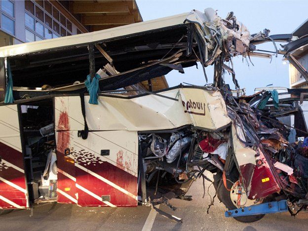 Los dos conductores del autobús figuran entre los fallecidos y los heridos fueron trasladados a cuatro centros hospitalarios.