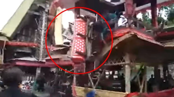 El vídeo del momento muestra cómo la escalera se desliza justo cuando el ataúd está entrando ya en lo alto de la torre y cae sin que nadie pueda evitarlo. El resto de presentes se apresuraron horrorizados a ayudar a levantar el ataúd, pero no pudieron evitar que Samen muriera poco después en el hospital.