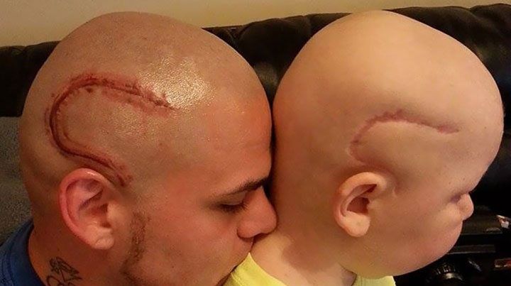 Tras ser intervenido quirúrgicamente, al pequeño le quedó una gran cicatriz en la cabeza que le hizo perder la confianza en sí mismo. El niño se sentía como un monstruo y su padre no podía soportar esa sensación. Por ello, Josh decidió tatuarse en la cabeza la misma cicatriz que su hijo con el fin de que este recuperara la confianza.
