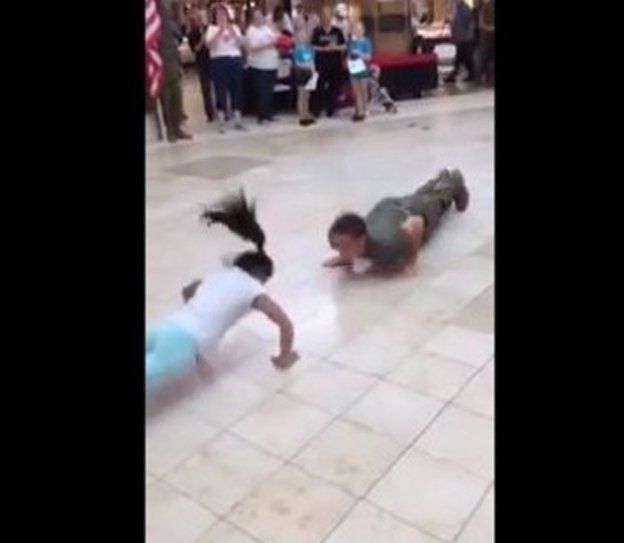 Pasó en Carolina del Norte, en Estados Unidos. Una chica joven decidió apuntarse a un campeonato de flexiones de brazos en el que se enfrentó a un marine del ejército norteamericano.