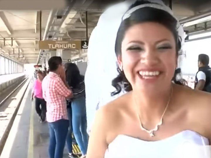 Cientos de usuarios la vieron con su vestido blanco, velo y tacones, corriendo por los pasillos de la Línea 12.