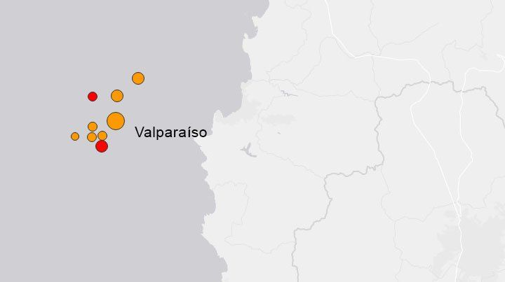 Luego del fuerte sismo de 6,9 grados registrado en el océano Pacífico, a 72 kilómetros al oeste de la ciudad chilena de Valparaíso se han producido otros movimientos sísmicos de menor intensidad.