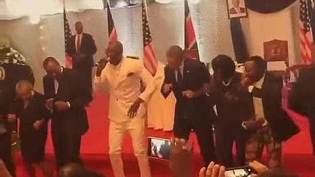 Obama, que compartió mesa con Kenyatta y su mujer, la primera dama Margaret y otros funcionarios kenianos, bailó al ritmo del popular grupo local Sauti Sol que animó al presidente norteamericano a abrocharse la chaqueta y a unirse a ellos en el escenario. Pocos minutos faltaron para que el baile de los presidentes juntos a varios huéspedes, entre ellos la hermana de Obama, Auma, llegara a YouTube. De acuerdo con los espectadores, estaban bailando la danza tradicional Lipala, que Sauti Sol bautizó como «Gangnam Style» en respuesta al popular baile surcoreano que hace unos meses rompió el contador de YouTube.Fuente: abc.es