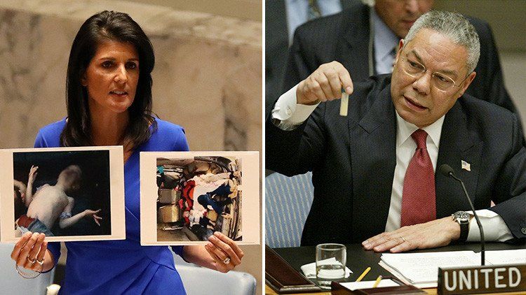 No obstante, Bridge remarca la asombrosa similitud del discurso y acusación de Haley con la realizada ante el mismo Consejo de la ONU, hace 15 años por el entonces secretario de Estado de EE.UU., Colin Powell. "El 5 de febrero de 2003, Powell reclamó enérgicamente una acción militar contra el Irak de Saddam Hussein, acusándolo erróneamente de fabricar y almacenar armas de destrucción masiva. Para ello mostró a la Asamblea un falso frasco supuestamentel leno de ántrax", recuerda.