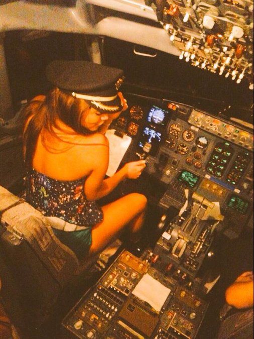 Fue entonces cuando el piloto invitó a la cabina a las dos jóvenes, quienes accedieron encantadas, algo que en realidad está totalmente prohibido por las compañías aéreas.Las dos bellas modelos fueron a más, y una vez en la cabina del avión le pidieron al comandante sentarse en su asiento. Él redobló la apuesta: accedió y les dio su gorra para que se tomen fotos.