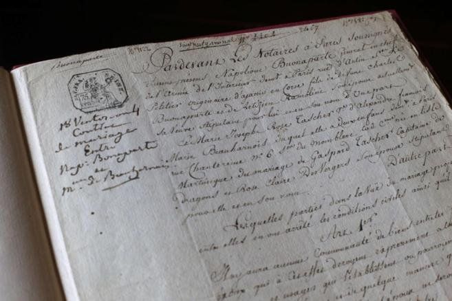 El primer artículo del contrato matrimonial, que une al futuro Napoleón I y a Marie Josèphe Rose Tascher de La Pagerie, conocida como Josefina de Beauharnais, estipula que "los futuros esposos no dispondrán de bienes gananciales". En consecuencia, "los futuros esposos no tendrán ninguna obligación respecto a las deudas e hipotecas del otro".