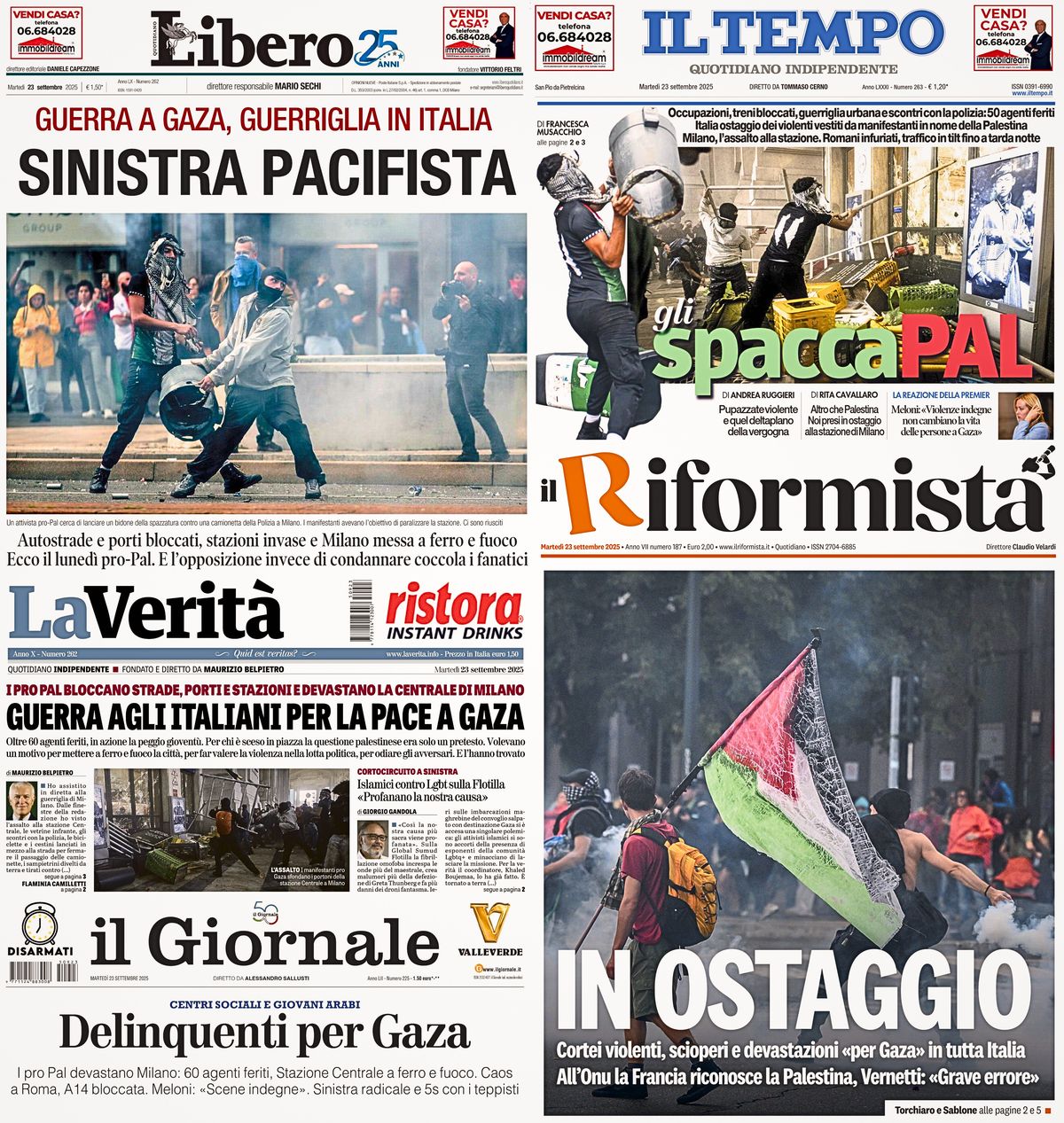 Mientras el gobierno italiano, de Giorgia Meloni, ha declarado que por ahora no reconocerá un Estado palestino, decenas de miles de personas salieron este lunes a las calles de más de 80 ciudades de Italia en respuesta a un llamado de los sindicatos del país a "denunciar el genocidio en Gaza" y en apoyo a la flotilla humanitaria Global Sumud.