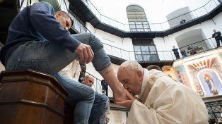 El papa Francisco, conmovido por el universo carcelario, celebró una vez más una misa del Jueves Santo en una prisión lavando los pies de doce presos, entre ellos dos musulmanes, un ortodoxo y un budista.