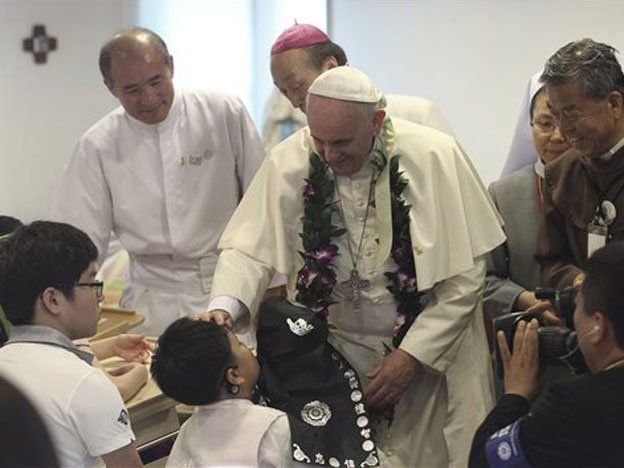 Después de la misa, el papa fue a visitar un gigantesco centro católico para enfermos y discapacitados en Kkottongnae, a unos 80 km de Seúl, donde ofreció sus bendiciones.