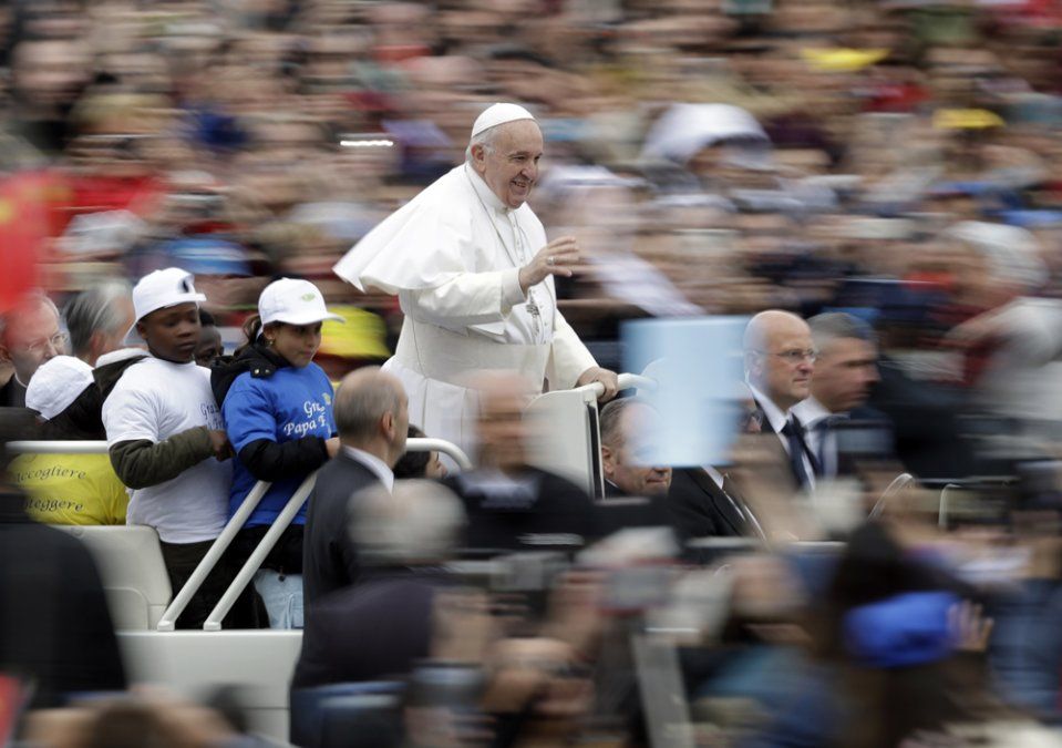 El Papa subió a los menores, procedentes de Siria, Nigeria y Congo, al vehículo al comienzo de su audiencia general semanal y recorrió la Plaza de San Pedro con ellos en el asiento trasero.