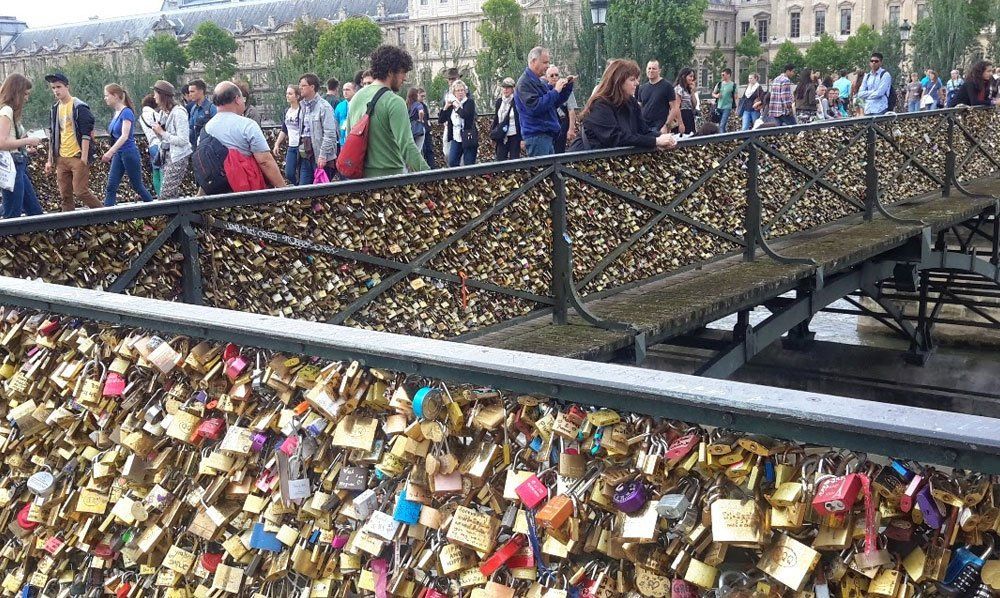 La alcaldía de París quiere que la ciudad siga siendo "la capital de romanticismo y del amor" pero sin cadenas en sus puentes, por lo que va a lanzar una operación para intentar disuadir a los turistas de esta práctica de moda.Después de que los candados colonizaran el Puente de las Artes, los turistas comenzaron a colgar candados en el Pont Neuf (Puente Nuevo), el más antiguo construido en piedra que hay en la capital francesa."En los próximos días van a instalarse paneles y una señalética en el suelo en varios puentes, especialmente en el Pont Neuf ", dijo a la AFP Bruno Julliard, vicealcalde de la capital a cargo de la Cultura, a la salida de una reunión técnica para articular el dispositivo. Los "candados del amor" que cuelgan los enamorados para dejar un testimonio de su idilio, una práctica que también se reproduce en otros lugares del mundo, habían invadido hace varios años el Puente de las Artes. En su guerra contra los candados, después de que una parte del enrejado de la baranda se cayó vencida por el peso del amor, las autoridades reemplazaron la reja por un panel de vidrio. La municipalidad también prevé instalar paneles explicativos en francés y en inglés con consignas como "Sin cadenas, París les agradece" o "Declaren su amor de otra manera", explicó el representante local. Los candados "tapan las perspectivas sobre la Sena, una de las vistas más bonitas del mundo registrada por la Unesco", dijo el funcionario, que explicó que también hay cuestiones de seguridad. "Las cadenas, suman cientos de kilos y los paneles se caen", afirmó. "Queremos que París siga siendo la capital del romanticismo y del amor y que las parejas de enamorados del mundo entero vengan a París, que es una ciudad muy romántica, especialmente el Sena y sus puentes, pero también hay que proteger el patrimonio. Se puede demostrar el amor de otra forma que con un candado", agregó.