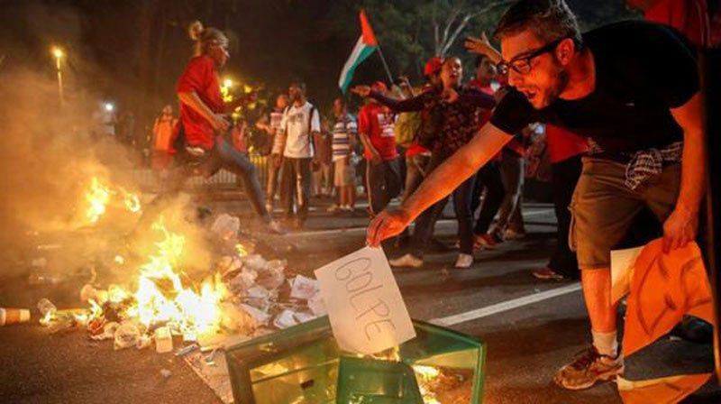 Partidarios de la presidente suspendida de Brasil, Dilma Rousseff, volvieron a las calles en una nueva jornada de manifestación de apoyo a la mandataria, quien finalmente fue destituida por el Senado.En un número menor al del lunes, cuando Rousseff compareció personalmente al Senado para ser interrogada por los legisladores que la acusaron y los que la defendieron, simpatizantes de la gobernante se movilizaron en varias capitales del país.En San Pablo, unas 200 personas, según la Policía Militarizada, circularon de nuevo por la Avenida Paulista hasta el Museo de Arte de San Pablo (MASP), donde las autoridades volvieron a poner un cordón para impedir el paso del grupo hasta la sede de la Federación de Industrias del Estado de Sao Paulo (FIESP).En las afueras de la FIESP, el mayor gremio empresarial del país y ubicada a tan sólo una cuadra del MASP, decenas de manifestantes contrarios a Rousseff y que pidieron su destitución acmparon desde hace varios meses y, de acuerdo con la Policía, las autoridades volvieron evitar el encuentro entre los dos grupos.Varios de los manifestantes de este martes, partidarios de Rousseff, portando carteles de apoyo a la jefa de Estado y mensajes de rechazo al Gobierno del presidente interino, Michel Temer, se sentaron en la céntrica avenida e impidieron el tránsito de vehículos durante varios minutos.Después, los manifestantes marcharon hasta la plaza Roosevelt, hasta donde estaba autorizado el recorrido, pero quisieron continuar en dirección a la sede del diario Folha de Sao Paulo, en el centro, y fueron impedidos por la Policía, que lanzó gases lacrimógenos y arrestó a dos de los participantes que los enfrentaron.