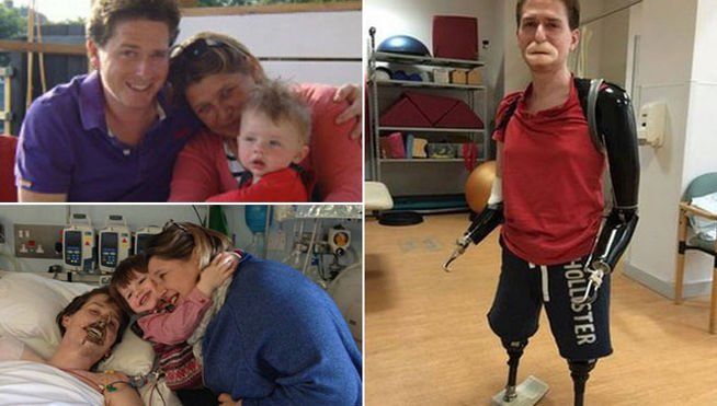 Ahora está bien –o por lo menos mejor que antes- aprendiendo a caminar de nuevo después de tres meses de tratamiento en el Hosptial Queen Mary de Londres. Puede volver a jugar con su hijo de cuatro años y pasear con su mujer, Lucy, quien no se ha separado de él desde que le informaron –o prácticamente, le afirmaron- que se quedaría viuda.