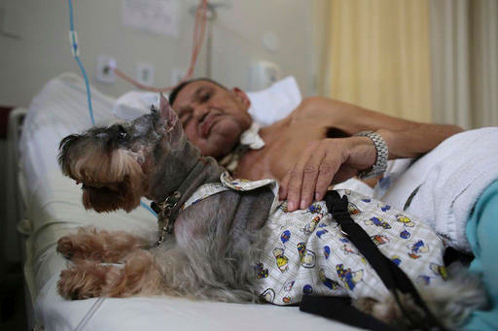 Cada semana, los pacientes en el Hospital de Apoyo de Brasilia reciben la visita de una raza especial de terapeutas: perros entrenados para ayudarlos a recuperarse de enfermedades o lesiones.Grandes y pequeños, desde pastores alemanes hasta Shih Tzus, los perros se suben a la cama de algunos pacientes para acurrucarse durante una visita de 15 minutos. Los pacientes con mayor movilidad pueden llevar a los animales a sus clases de manualidades o jugar con ellos en los pasillos.Creado para personas que presentan cáncer en etapa avanzada, que viven con enfermedades crónicas o que se recuperan de traumatismos, el programa de interacción canina ayuda tanto en la rehabilitación mental como en la física."Un poco de la tristeza desaparece", dijo Jaqueline Castro, una paciente de 27 años con un trastorno degenerativo del sistema nervioso y quien recibe tres visitas al mes.El proyecto inició aproximadamente hace cinco meses y ahora cuenta con 60 voluntarios que llevan semanalmente a sus mascotas al hospital en la capital de Brasil.Pero no todo perro es aceptado: Solo cerca de uno de cada 10 canes cuyos dueños son voluntarios es aceptado, de acuerdo con Nayara Brea, coordinadora del programa.Los animales deben pasar por exhaustivas revisiones de salud y someterse a entrenamiento, antes de poder ser llevados a las salas del hospital. Deben ser excepcionalmente tranquilos para evitar estresar a los pacientes. No se les permite ladrar, y deben ser amables con humanos y otros perros.Un perro de terapia "acepta a los pacientes sin dudarlo", afirmó Valeria Carvalho, quien lleva a su pequeña perra Schnauzer, Paola, al hospital. "La gente empieza a tener una perspectiva diferente sobre la vida, sobre la salud".
