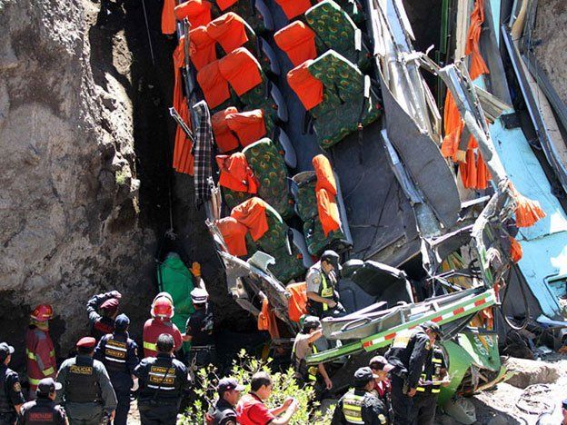 El accidente carretero ocurrió poco después de las 5:45 de la tarde, hora local, en el kilómetro 148 cerca de la ciudad de Puquio, en el estado de Ayacucho. "El bus cayó a un abismo de unos 1.000 metros de profundidad, la policía está intentando recuperar los cadáveres", dijo a la televisora local ATV+ el coronel Orfiles Bravo, jefe de la policía de carreteras.Bravo dijo que el hospital de Puquio, con cuatro médicos de turno, colapsó cuando llegaron decenas de heridos, un evento similar a lo que ocurrió en el siniestro de la última semana. "Por eso varios heridos fueron trasladados hasta el hospital de Challhuanca", añadió el oficial. El bus de la empresa de transporte "Sánchez" partió la noche del domingo de Lima y su destino era la ciudad sureña de Cusco.