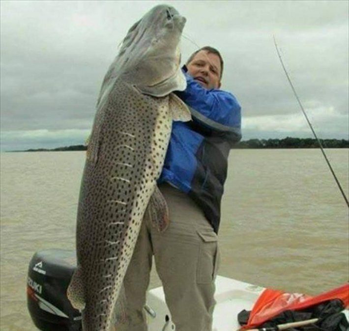 Pescadores de Asunción (Paraguay) lograron capturar un enorme ejemplar de surubí, durante una jornada de pesca y relax en la zona de confluencia de los ríos Paraná y Paraguay. El gigantesco pez, cuyo peso es de 80 kilos y cuya longitud sobrepasa los dos metros, tras la sorprendente captura y las fotos para testimoniareste inédito momento en el historial de estos pescadores, fue devuelto a las aguas del río Paraná, detalló el diario ABC de Paraguay.Julio César Santiviago relató que frecuentan la zona por su riqueza íctica. Dijo que históricamente han capturado ejemplares de gran tamaño, pero jamás uno de estas dimensiones. Mencionó que en la embarcación estaban tres amigos y la captura se realizó con caña de pescar, teniendo como carnada un mbusu.