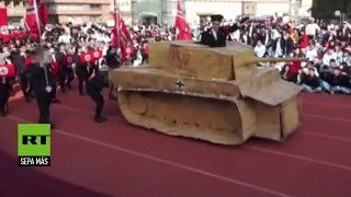 Las esvásticas y los estandartes nazis desfilaron en una escuela taiwanesa cuando un grupo de estudiantes secundarios decidió representar a la Alemania hitleriana durante un acto. El hecho se ganó el repudio internacional.Esta controvertida situación se dio en una escuela en la que los pibes debían elegir figuras históricas para recrear, por lo que se inclinaron por el Tercer Reich."Votaron por disfrazarse de nazis", comentó su profesor, Lui Hsi-cheng, quien reconoció que les advirtió que Adolf Hitler era una figura "controvertida", pese a lo que los alumnos siguieron adelante con su deseo.Por eso, crearon los trajes, los símbolos y hasta tanques del nazismo con los que desfilaron por su escuela. Incluso, se detuvieron para saludar con su brazo derecho extendido en alto.Tras conocerse las imágenes, el representante del gobierno israelí en Taiwán, Asher Yarden, condenó la "ocurrencia sin gusto" y pidió a las autoridades locales que "introduzcan en sus programas educativos la enseñanza de lo que significó el Holocausto" para evitar que se repita una representación "impactante y deplorable".Por su parte, autoridades del Instituto Alemán de Taipei afirmaron que "los estudiantes no comprenden claramente qué significa la opresiva simbología nazi y su falta de respeto por los derechos humanos". En medio de esta marea de críticas, el profesor Lui reconoció que debió haber prohibido la representación.