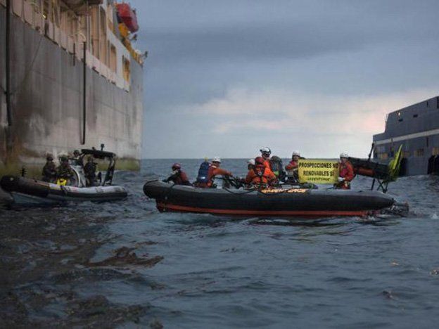 Julio Barea, geólogo de Greenpeace, dijo el sábado que creen que la exploración pudieran causar daños ambientales "graves" alrededor de las islas.