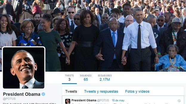 Hello, Twitter! It's Barack. Really! Six years in, they're finally giving me my own account. — President Obama (@POTUS) Mayo 18, 2015 In Camden today, seeing first-hand how smart policing is making the community safer while building trust. pic.twitter.com/3MiWk43c8g — President Obama (@POTUS) Mayo 18, 2015 Good question, @billclinton. The handle comes with the house. Know anyone interested in @FLOTUS? — President Obama (@POTUS) Mayo 18, 2015