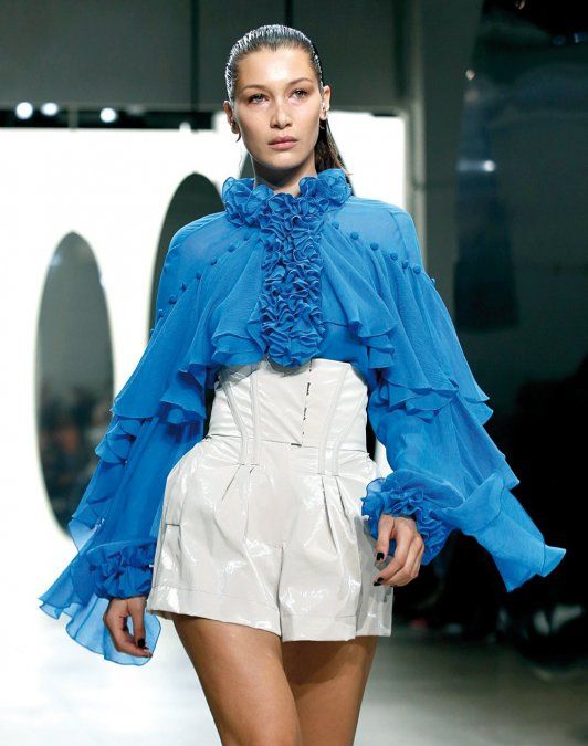 Para el día, apostó Gurung por tops de mangas largas abultadas y con pliegues combinados con shorts amplios de talle alto y ajustados a la cintura. Entre los vestidos de noche, se destacaron también los volados y las aperturas en los laterales o el centro del torso confeccionados con telas brillantes y metálicas de los colores insignia de la colección.