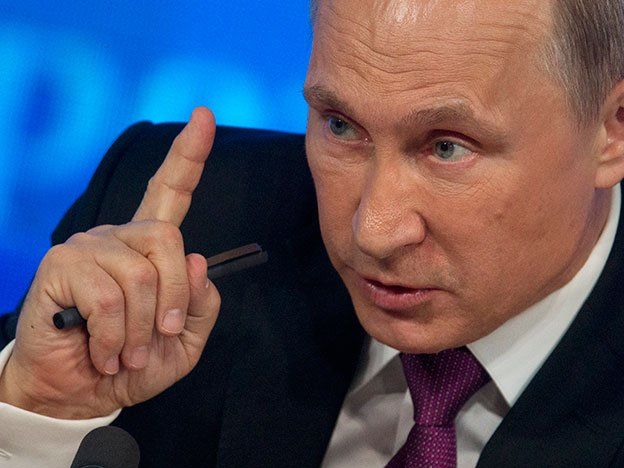Putin mantuvo un mensaje desafiante contra Estados Unidos y la Unión Europea, diciendo que las sanciones impuestas contra Rusia tras la anexión de la península de Crimea - en el mar Negro y que antes pertenecía a Ucrania - el pasado marzo formaban parte de una campaña histórica para debilitar al país. Acusó a Occidente de intentar violar la soberanía rusa, añadiendo que la crisis ucraniana fue solo un pretexto para emprender acciones.