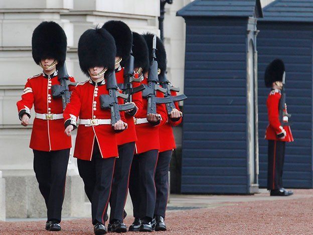 Un guardia real del Palacio de Buckingham hizo el ridículo en pleno cambio de turno antedecenas de personas que presenciaban el suceso.El custodio, que se preparaba para iniciar su jornada, resbaló y cayó al piso justo cuando una multitud observaba y filmaba el solemne evento.