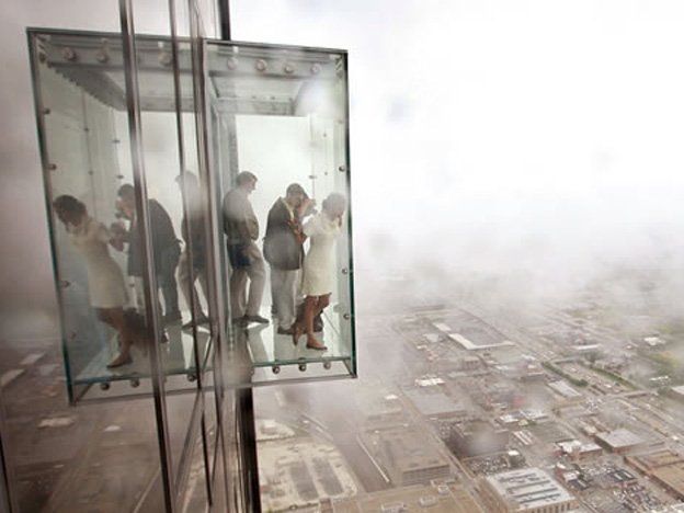 ¡Qué susto! El piso de balcón de vidrio de la Torre Willis en Chicago se resquebrajó con dos personas arriba