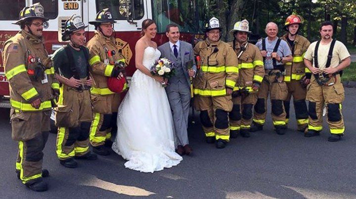 Un equipo de bomberos que respondió a un aviso en Connecticut, Estados Unidos, terminó salvando la boda de una pareja.