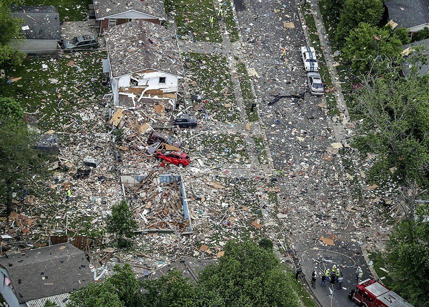 Las imágenes trajeron a la memoria las fotos tomadas después de una explosión en una casa en un vecindario de Indianápolis en diciembre del 2012, que dejó dos muertos y dañó o destruyó más de 80 casas. Las autoridades concluyeron que Mark Leonard había alterado un conducto de gas para hacer estallar la vivienda de su novia de forma que pudieran reclamar el dinero del seguro.