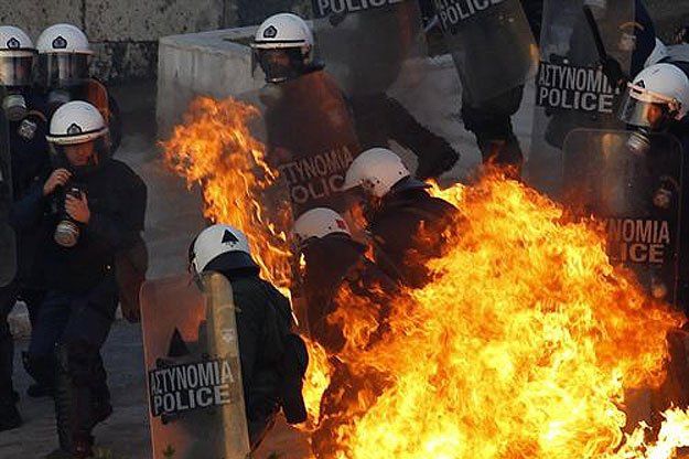 "Una decena de edificios están en llamas, en su mayoría por cócteles Molotov", afirmó Nikolaos Tsongas, portavoz de los bomberos que asegura que sus vehículos no pueden acercarse al lugar debido a la cantidad de gente congregada en las calles. En la calle Stadiou, un edificio de una planta, sede de un comercio de cristales de lujo y el cine aledaño ardían hacia las 19H45 GMT pese a la intervención de dos brigadas de bomberos.