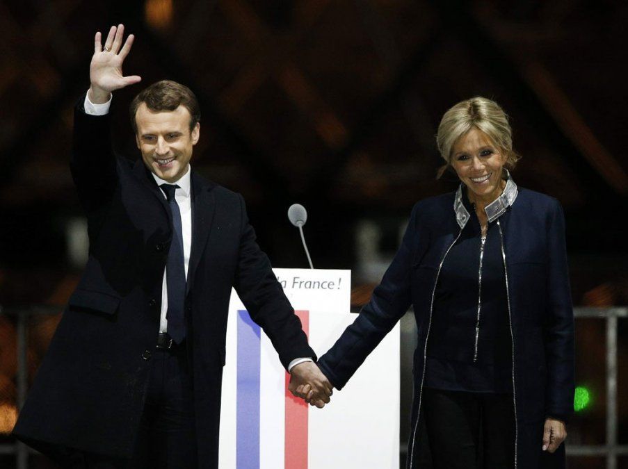 Brigitte, "siempre presente y cada vez más. Sin ella no sería quien soy", dijo Macron, agarrando a su esposa de la mano ante los militantes entusiasmados la noche en que ganó la primera vuelta de las elecciones presidenciales.