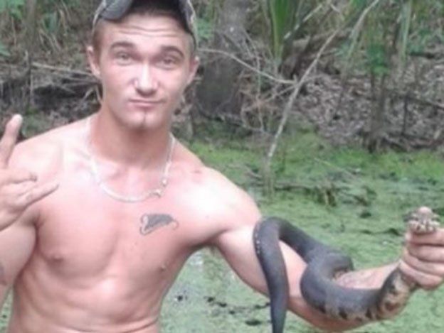 Austin Hatfield es un apasionado de los reptiles, pero su pasión le jugó en contra cuando trató de darle un beso a una víbora conocida como "boca de algodón", cuya mordida puede producir la muerte.