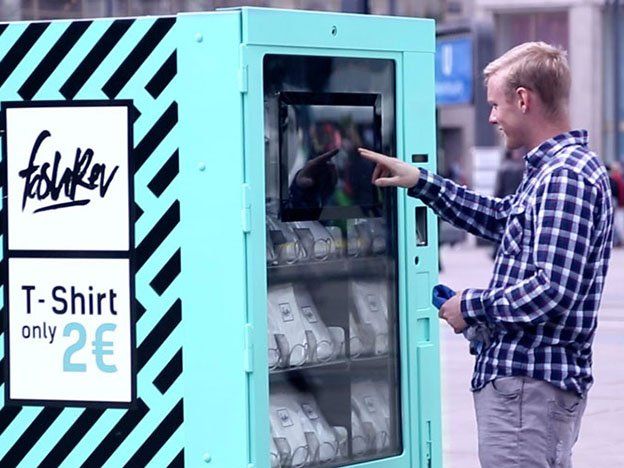 Una máquina expendedora colocada en Berlín ofrecía a los transeúntes remeras por solo 2 euros, pero tenía un gancho inesperado: primero tenían que ver un video sobre los trabajadores explotados de los talleres clandestinos que hacen posible que haya ropa así de barata.