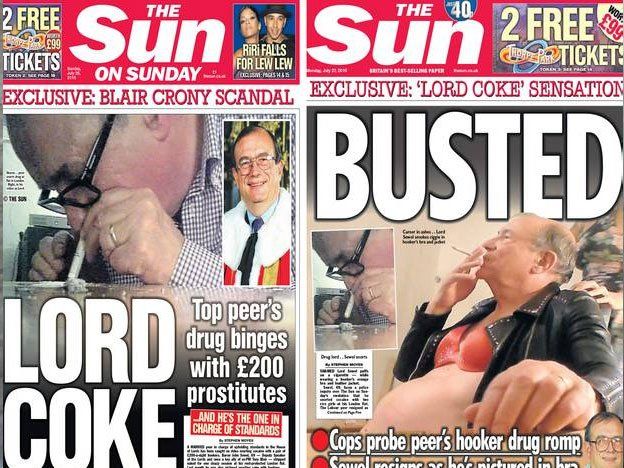 Lord John Sewel renunció el martes a su escaño tras ser filmado consumiendo cocaína con unas prostitutas, en un caso con todos los ingredientes del clásico escándalo británico: tabloides, sexo, drogas e hipocresía.El caso estalló como otros tantos que han provocado la caída de políticos y otras personalidades nacionales, con un video embarazoso publicado por un diario, en este caso The Sun.