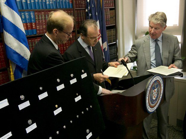 Las monedas tienen una antigüedad de hasta 515 años antes de Cristo y serán estudiadas y exhibidas en el Museo Numismático de Atenas. El fiscal de distrito Cyrus R. Vance Jr. y autoridades griegas hicieron el anuncio de repatriación.