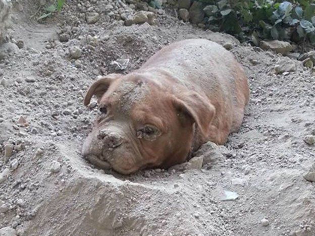 El joven Pedro Dinis caminaba tranquilo a las afueras de París junto a su perro cuando algo le sorprendió. El can se acercó a una zona del descampado por el que caminaban donde, para sorpresa e indignación del joven, se toparon con una perra enterrada hasta el cuello con escombros por encima y que mostraba serias muestras de deshidratación.