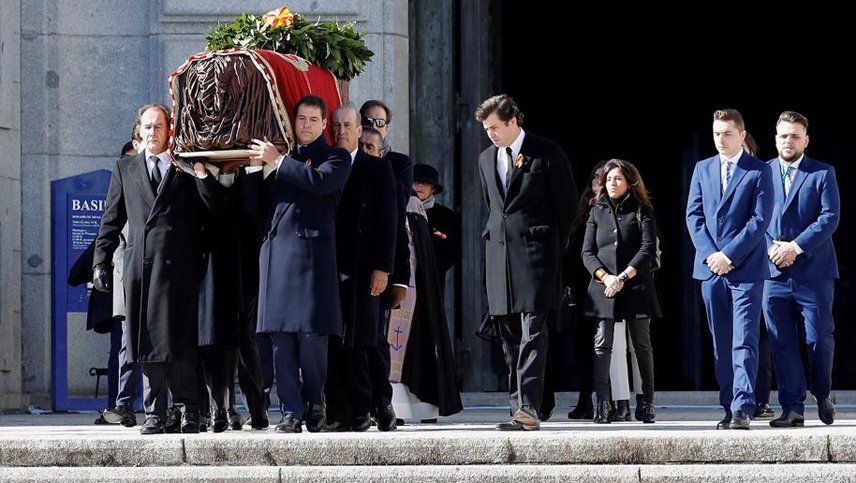 El féretro con los restos del dictador Francisco Franco salió este jueves de la Basílica del Valle de los Caídos en los hombros de sus familiares, quienes reivindicaron públicamente su figura al grito de "¡Viva Franco! ¡Viva España!", en una imagen que pasará a la historia.