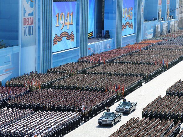 También estuvieron en Moscú el cubano Raúl Castro y el venezolano Nicolás Maduro, y el secretario general de la ONU, Ban Ki-moon. Rusia aprovechó la ocasión para exhibir ante cientos de miles de personas su moderno armamento, como el Tanque Armata T-14, considerado uno de los más potentes del mundo, o misiles balísticos intercontinentales de cerca de 50 toneladas."Hay que recordar que es el ejército ruso el que, tras un asalto a Berlín, puso punto final a la guerra contra la Alemania hitleriana", declaró Putin, en un discurso ante los 16.000 soldados congregados en la Plaza Roja, antes del inicio de un gigantesco desfile militar. "La Unión Soviética participó en las batallas más sangrientas" dijo el presidente ruso en su discurso, en referencia a los más de 25 millones de soviéticos que murieron en la guerra.