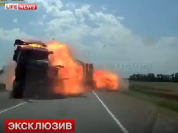 Dos camiones protagonizaron un impresionante accidente en una ruta de Rusia que quedó filmado por un conductor que alcanzó a esquivar el accidente.Al parecer, uno de los camioneros se quedó dormido y perdió el control del vehículo de carga. Los camiones impactan de frente y al instante se produce una gran explosión.